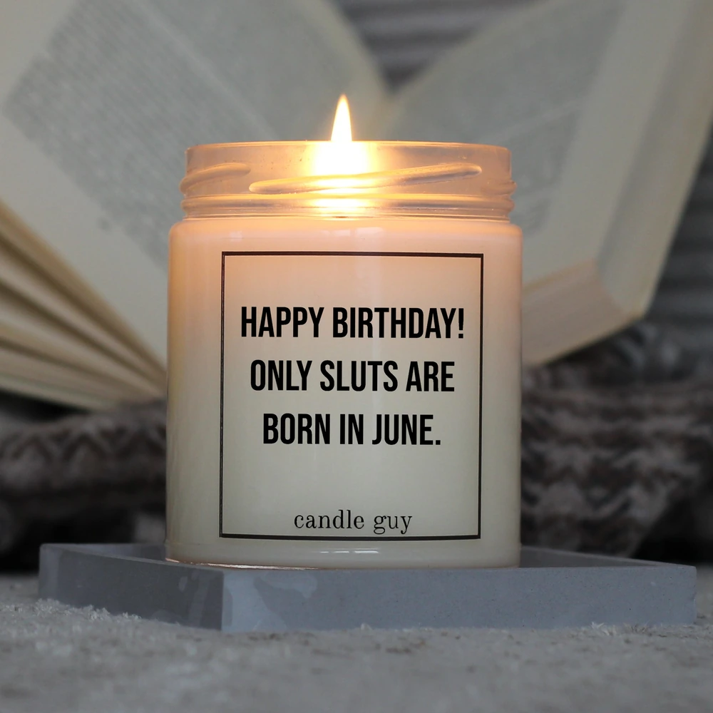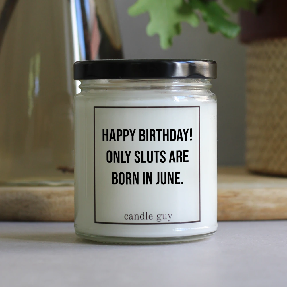 Die Spruch Kerze "Only Sluts Are Born In June." brennt ultralange und duftet himmlisch – das perfekte Geschenk für dich oder andere.
