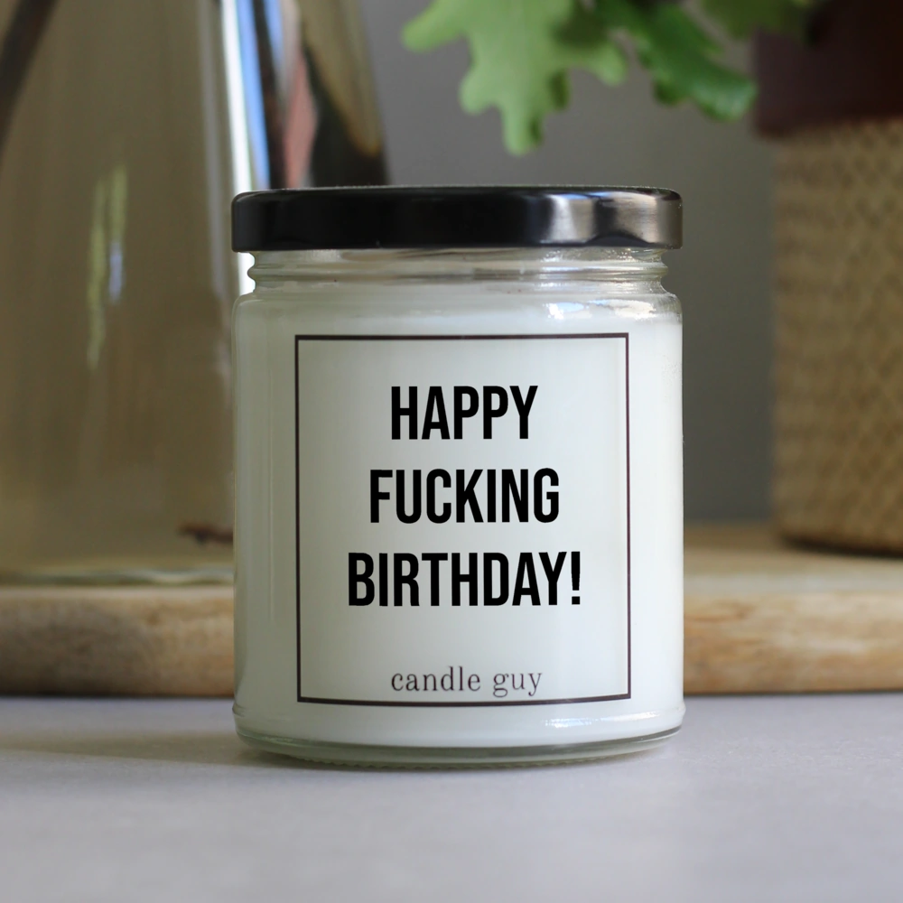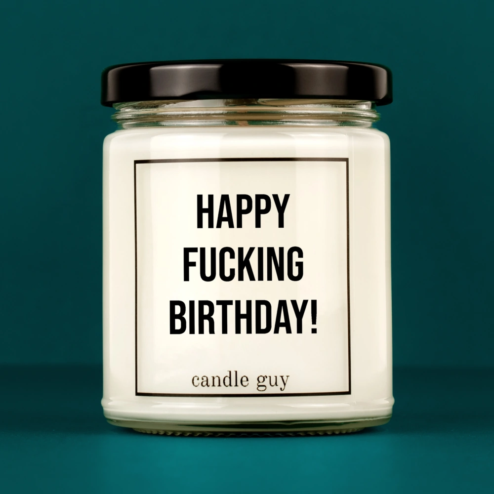 Die Spruch Kerze "Happy Fucking Birthday!" brennt ultralange und duftet himmlisch – das perfekte Geschenk für dich oder andere.
