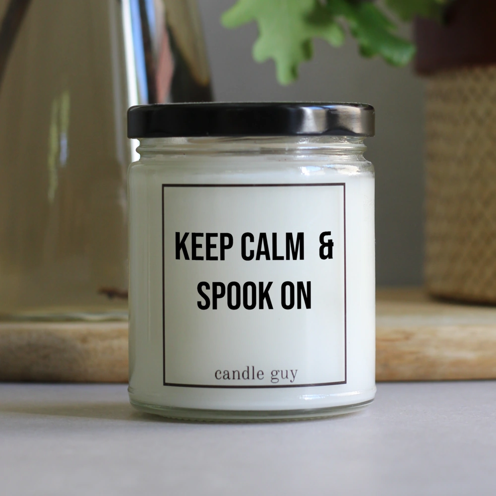 Die Spruch Kerze "Keep calm & spook on" brennt ultralange und duftet himmlisch – das perfekte Geschenk für dich oder andere.